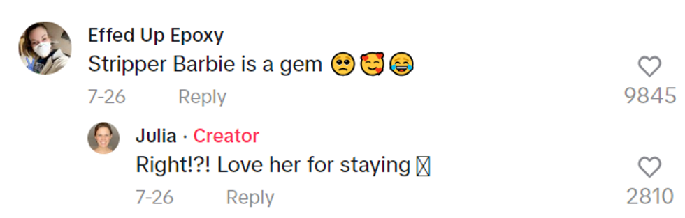 At the end of the video, the TikToker put a call out to "Stripper Barbie" to respond if she saw the video.