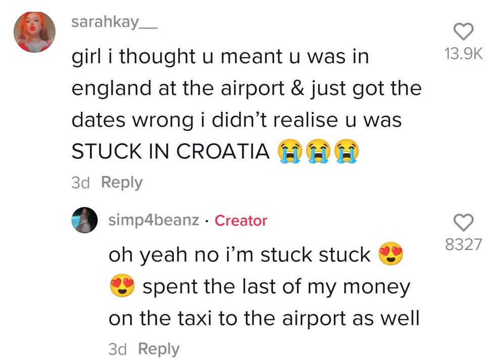 A TikTok user was on vacation in Croatia when she took a cab to the airport for her next destination. Upon arriving at 6 am, she found out she was a little early.