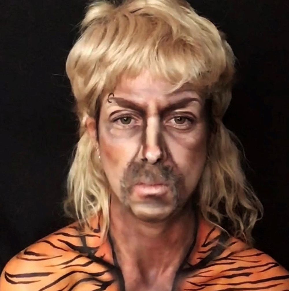 But it was not until the UK entered lockdown in March that she started aping celebrities using makeup – starting off with Joe Exotic, star of Tiger King, the Netflix series examining the weird and wonderful world of big cat breeders, which had just become a viral hit.