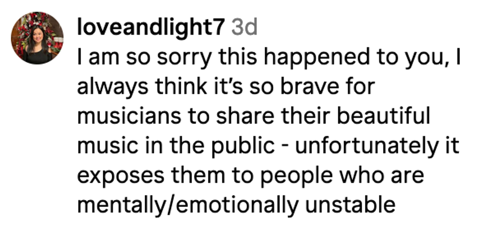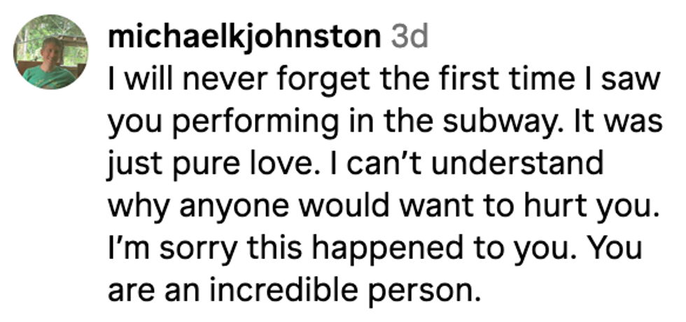 "Unfortunately, many other musicians who perform in the subway have been attacked, harassed, robbed."