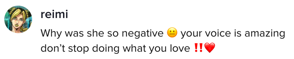 Specifically, the middle-aged woman told TikTok user @nahscha, "Your voice is like eh ehhh, don't sing anymore."
