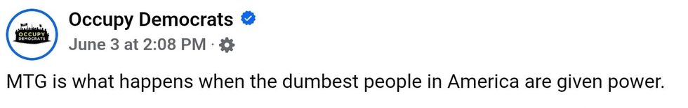 After over four years in Congress, as of June 5, 2025, MTG has had only one bill enacted into law. And that was only by "other means"—meaning provisions from her bill were incorporated into another bill that was then signed into law.