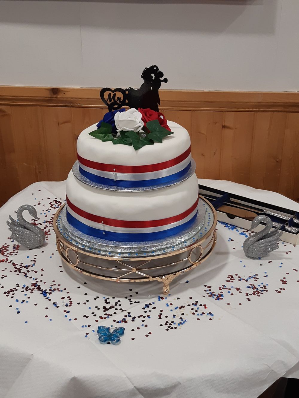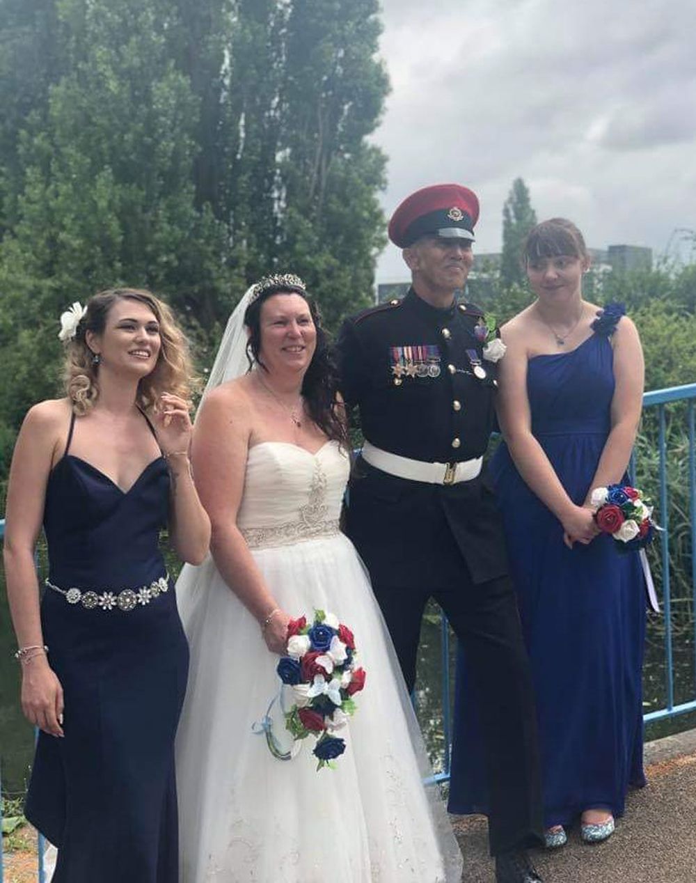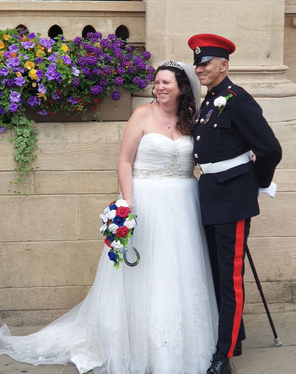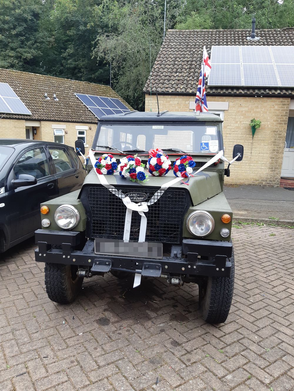 “Our wedding car was a military vehicle covered in silk flowers and draped with a flag, and all the decorations, including Polly's flowers, were in military colors – red, white and blue," he explained. “We had our reception at Northampton Conservative Club, and a friend was the DJ."