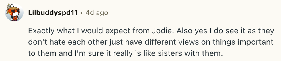 “We’ve never actually got into it, you know what I mean… And she posted sort of her viewpoint, and I posted mine. We've always been very different on those things.”