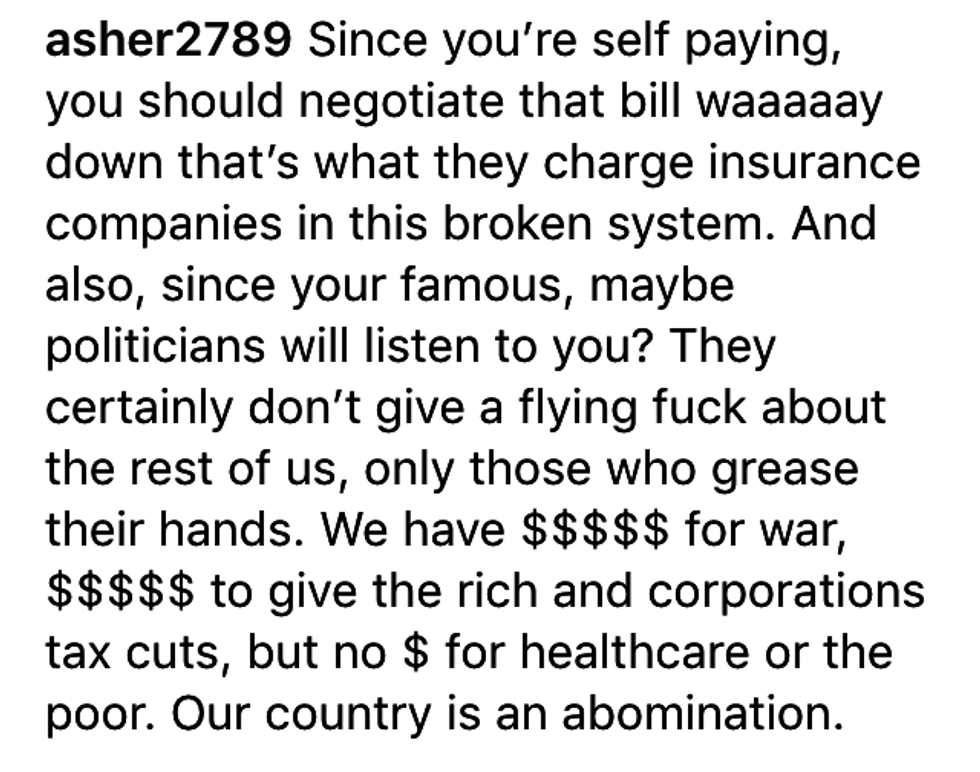 But many people did not hold back when it came to discussing the insanely expensive medical cost.