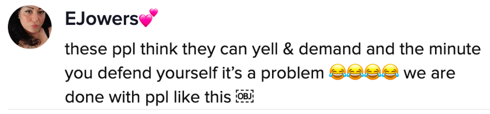Some laughed, while one man exclaimed the woman had "just cussed the whole [staff] out." Another employee could be heard arguing with Karen about her accusation nobody was doing their job.
