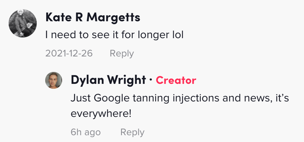 TikToker @dylanwright4 revealed a picture of himself from 2014 wherein he'd used tanning injections.
