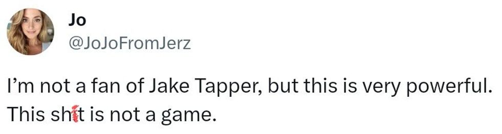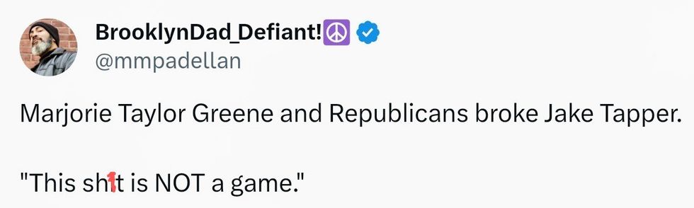 Tapper described Greene's resolution as reading like it was authored by someone who “learned about the Arab-Israeli conflict maybe 10 minutes before, who maybe didn’t even have access to Wikipedia" that “twists a bunch of things [Tlaib] said beyond recognition.”