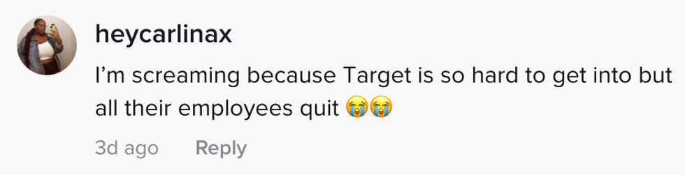 "F*ck Target, f*ck this store that never has sh*t anyways, and f*ck management. I quit, now go write an email about that, b*tch."