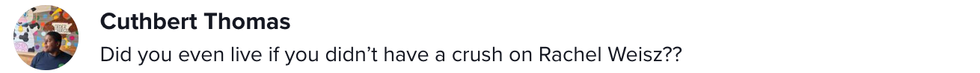 "Worth watching just to see me squirm when they played Rachel a clip of me saying she's my childhood crush. Nightmare."