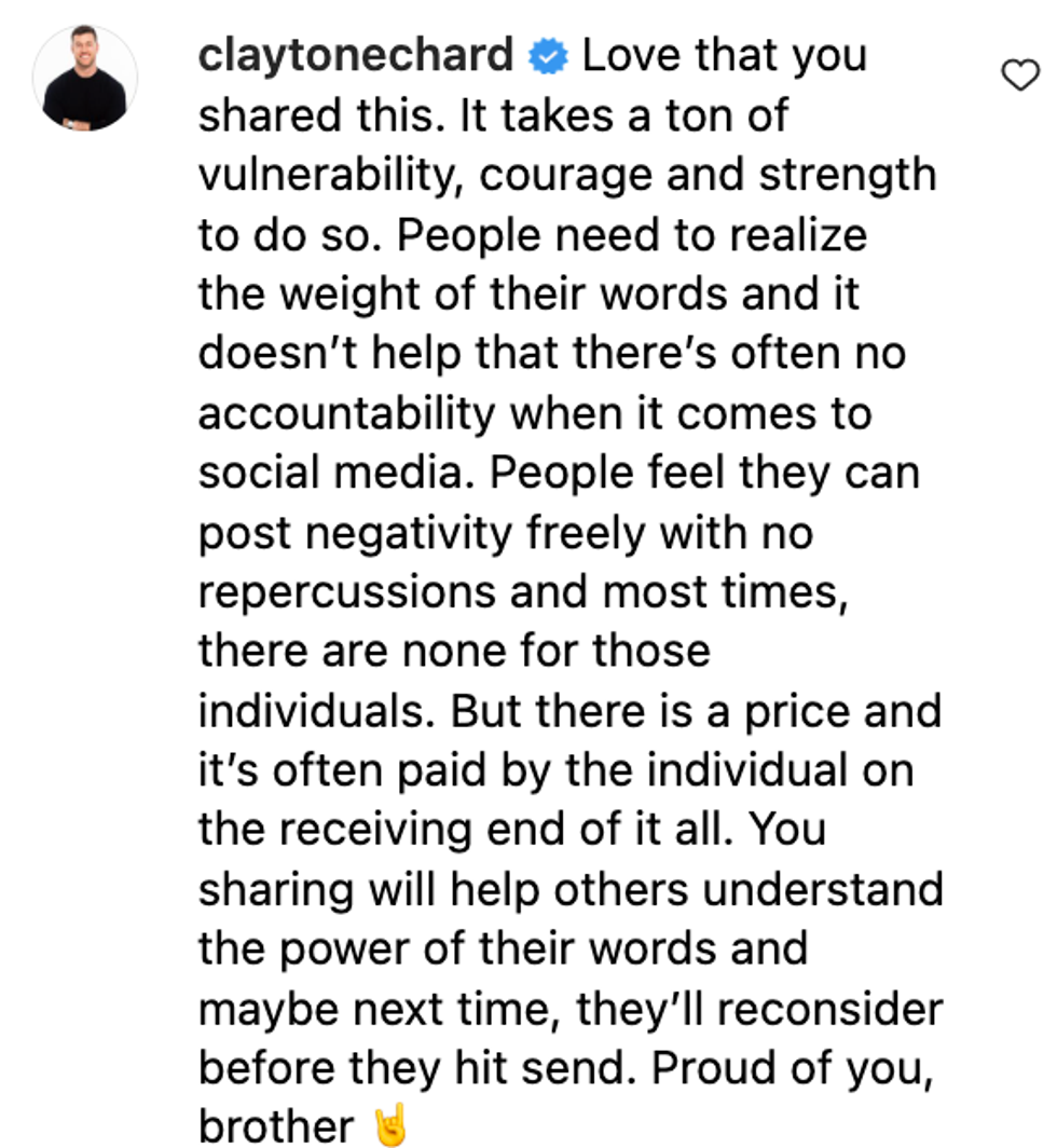 "You sharing will help others understand the power of their words and maybe next time, they'll reconsider before they hit send."