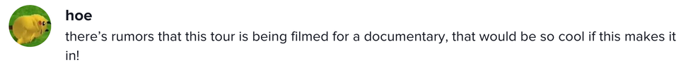 Several others noted there will be a documentary made of the ERAS tour and perhaps this moment will make it in.