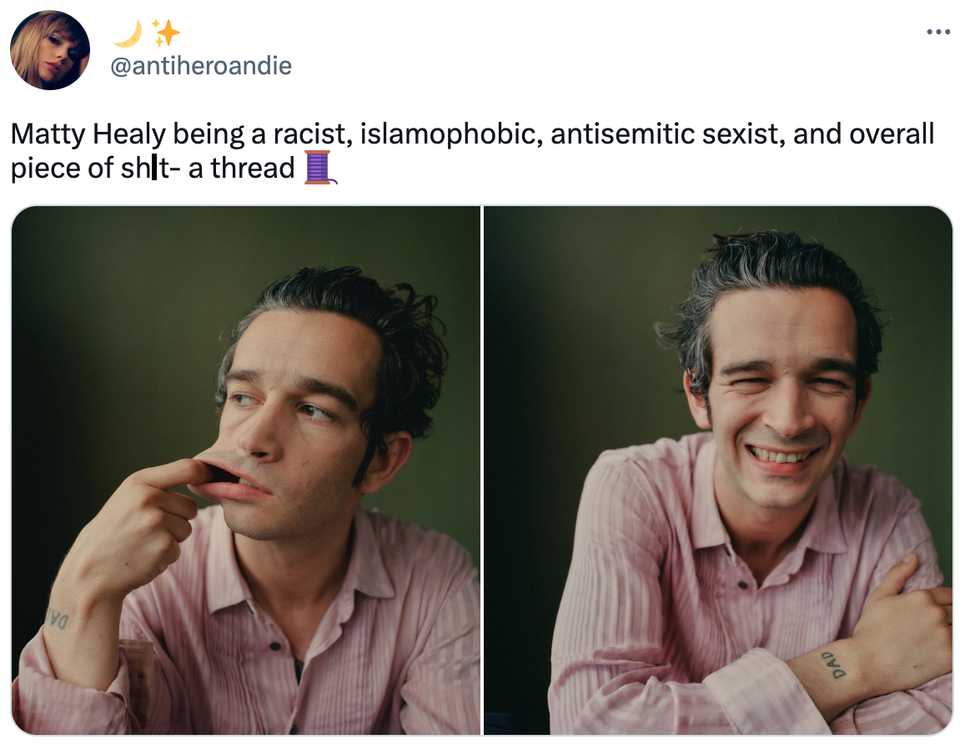 \u201cYes, that Matty Healy, from The Adam Friedland Show and the "controversial bit" he had to apologize for \u00af\_(\u30c4)_/\u00af\u201d— Ronnie (@Ronnie) 1683159594
