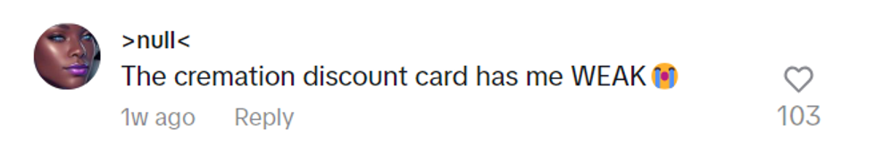 "...And [there is a] business card advertising 10 percent off of cremation services."