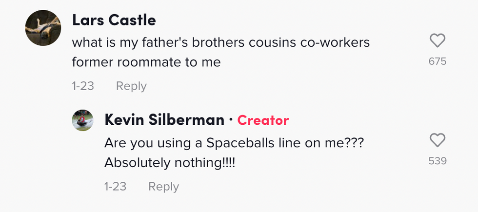Silberman goes on to say, "I had a lot of questions on this TikTok. I'm gonna just go over this one real quick, though," referring to the comment left that asks for clarification of person's relationship to a cousin's child.