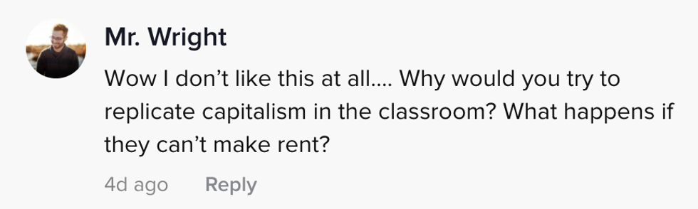 "And no, I would not traumatize and shame kids by evicting them and taking away their desk if they can't make rent."