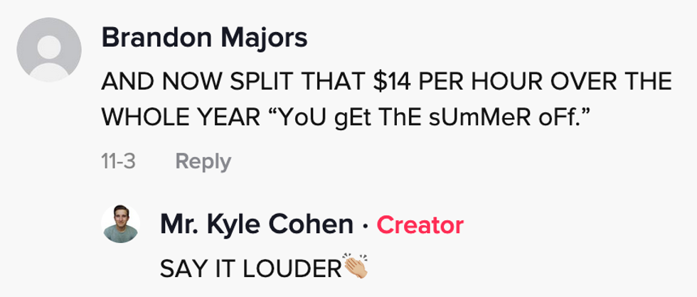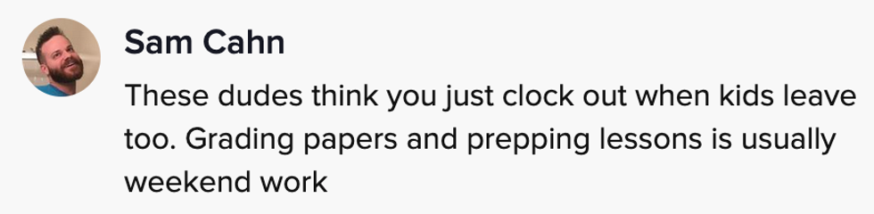 When a viewer suggested an educator's salary "only" reflected the eight-to-nine-month annual work schedule, Cohen posted a follow-up video breaking down the eye-opening amount of hours he commits to in a normal work week.