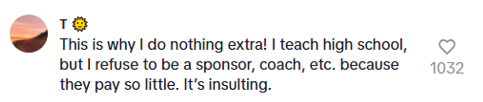 Fellow teachers chimed in and agreed that teachers were not paid enough for their extra work.