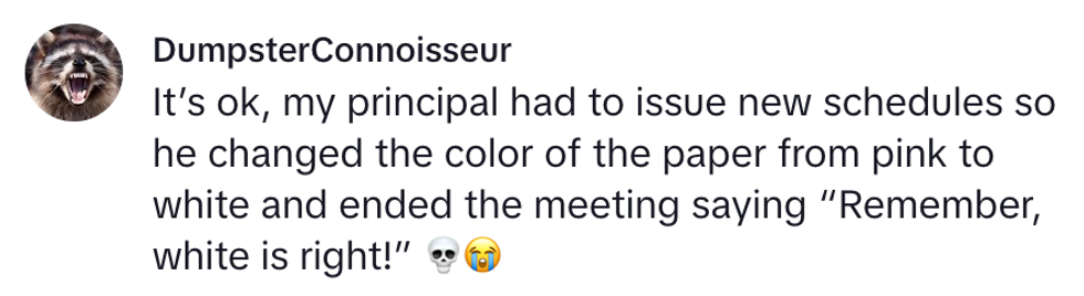 At that exact moment, Steph said the school's vice principal happened to walk by and asked to confirm what she just told the student.