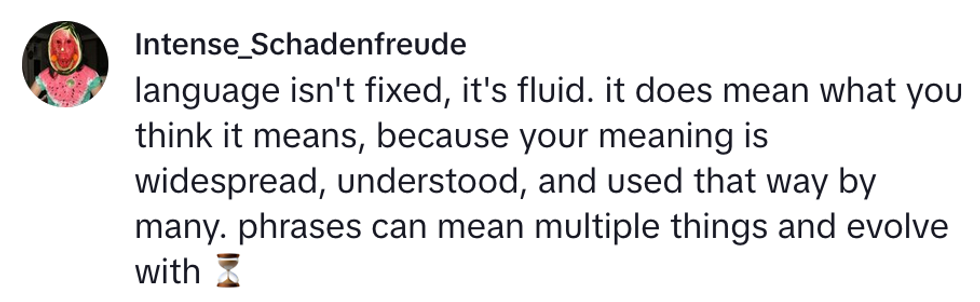 “Then about two weeks later, my husband and I are watching a commercial for a TV show, and a woman says it to her colleagues and they’re like, ‘that doesn’t mean what you think it means.' "