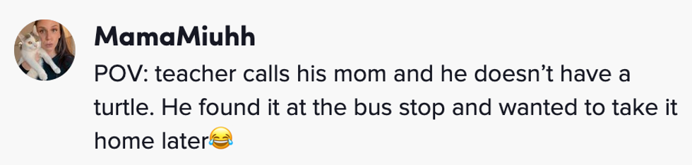 She was shook after discovering the source of the noise was a little turtle a student brought to school.