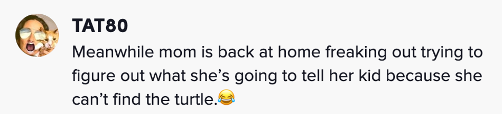 Laughter ensued as the camera zoomed in on the turtle, and the woman filming commented: