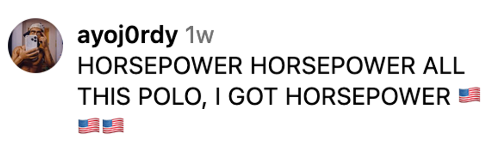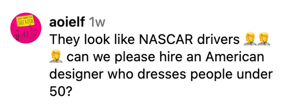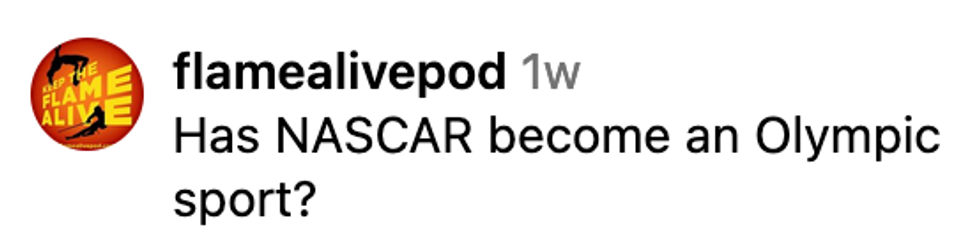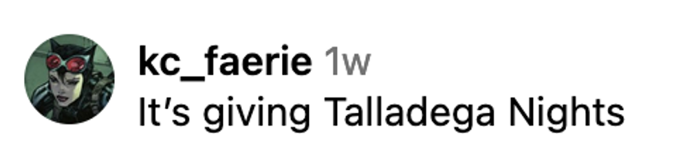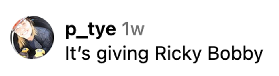 When an eager Instagrammer asked if the look was available to the public for purchase, a cheeky user quipped that the items could be found at "the merch stand at Talladega."