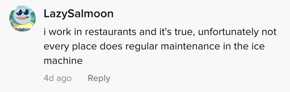 "A lot of times people go to a restaurant and get sick, and they think it's food poisoning. Let me tell you—there's a chance it was their ice that got you sick."