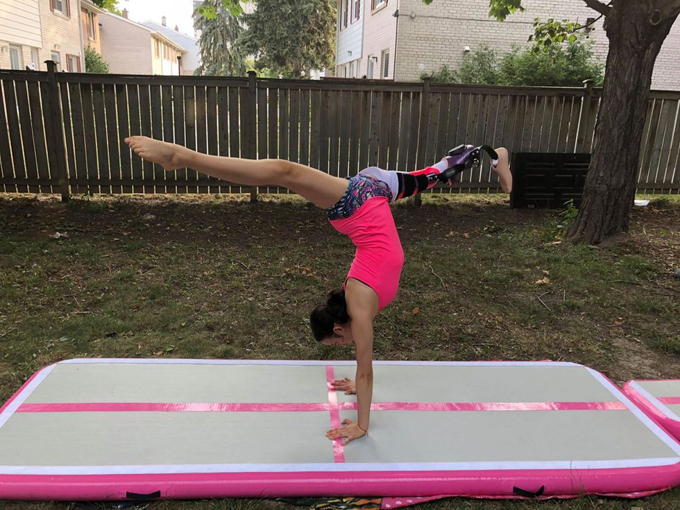 After receiving her prosthesis in September 2016, Emma spent the next 18 months slowly reintroducing herself to gymnastics—finishing her chemo in December 2016.