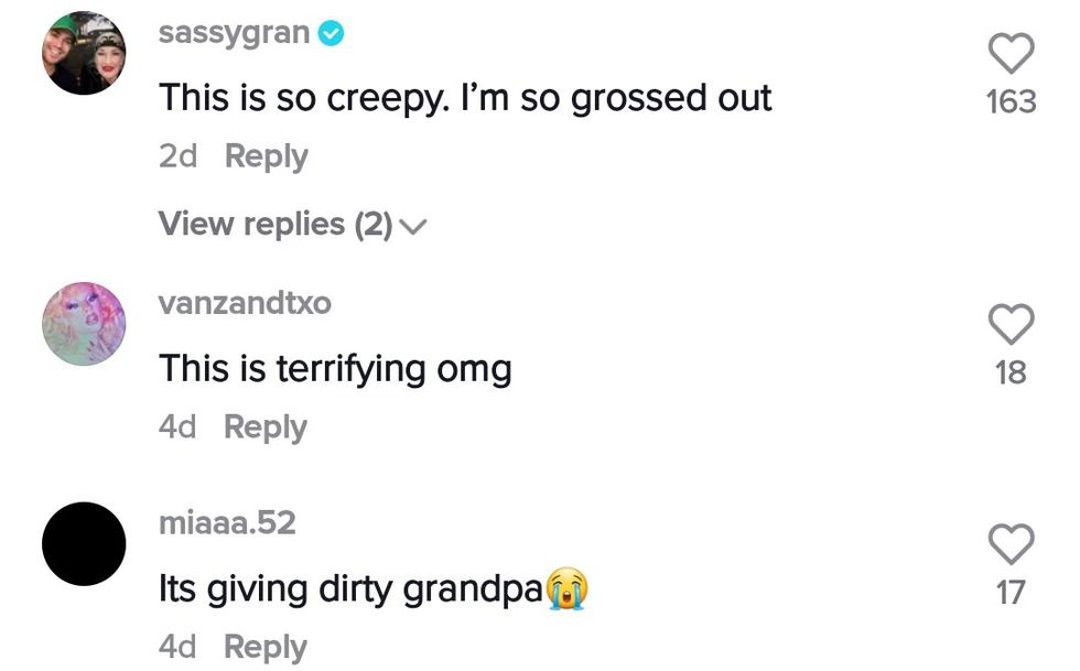To some, the old man's advances seemed pretty predatory - especially given his apparent excitement at "Emily" (not her real name) only being 18.