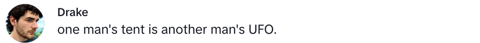 People in the comments were incredibly entertained and likened the floating tent to a "fairy" and "UFO."