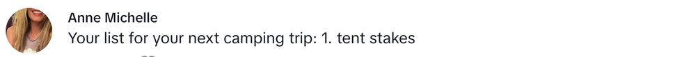 And several mentioned the TikToker needs to invest in some tent stakes for the next trip...