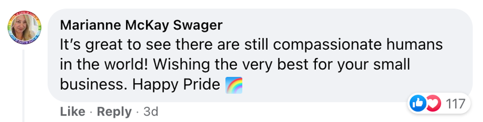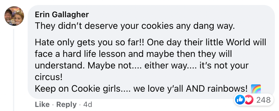 "We received a very hateful message on our business page canceling a large order (5 dozen) of summer themed cookies for tomorrow morning (that we just finished decorating) because of a rainbow heart cookie we posted."