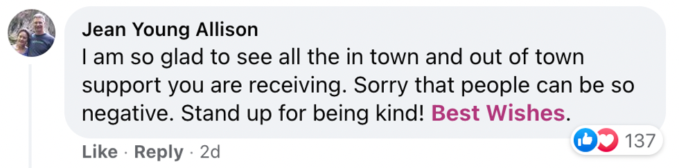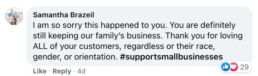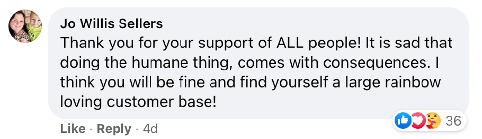 "My heart is heavy. Honestly I never thought a post that literally said more love less hate would result in this kind of backlash to a very small business that is struggling to stay afloat and spread a little cheer through baked goods."