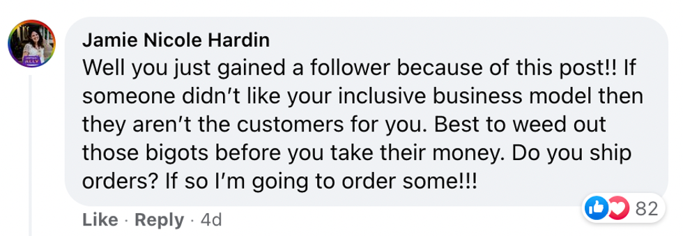 The owners received hate-filled messages over Facebook. They also had a very large order cancelled, a significant financial stress for the small local business.