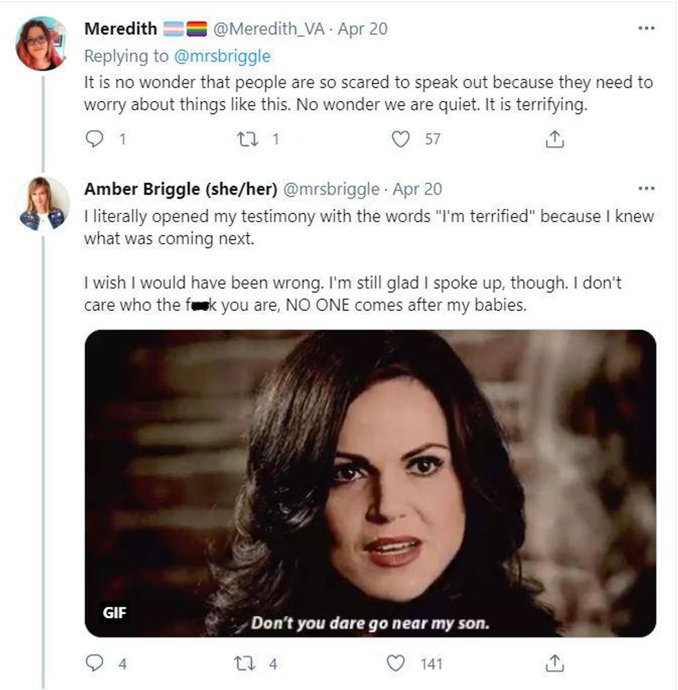 Kai Shappley was not the only person who received threats after testifying. Amber Briggle, mom of a transgender child, gave heartfelt testimony about the journey she went through with her son.