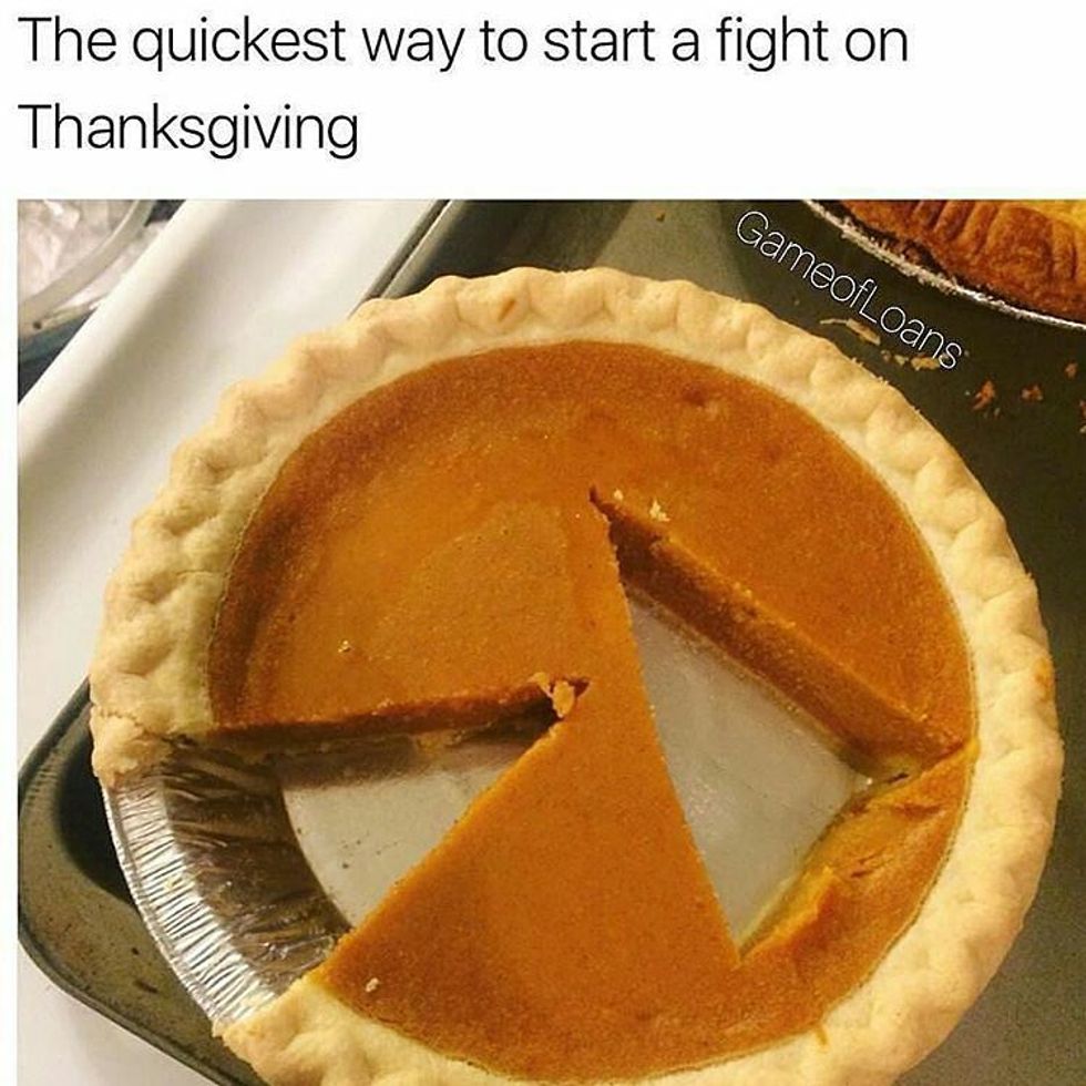 4. Seriously, who does this? The crust is one of the best parts of eating pie. Still, this is one of the best Thanksgiving memes.