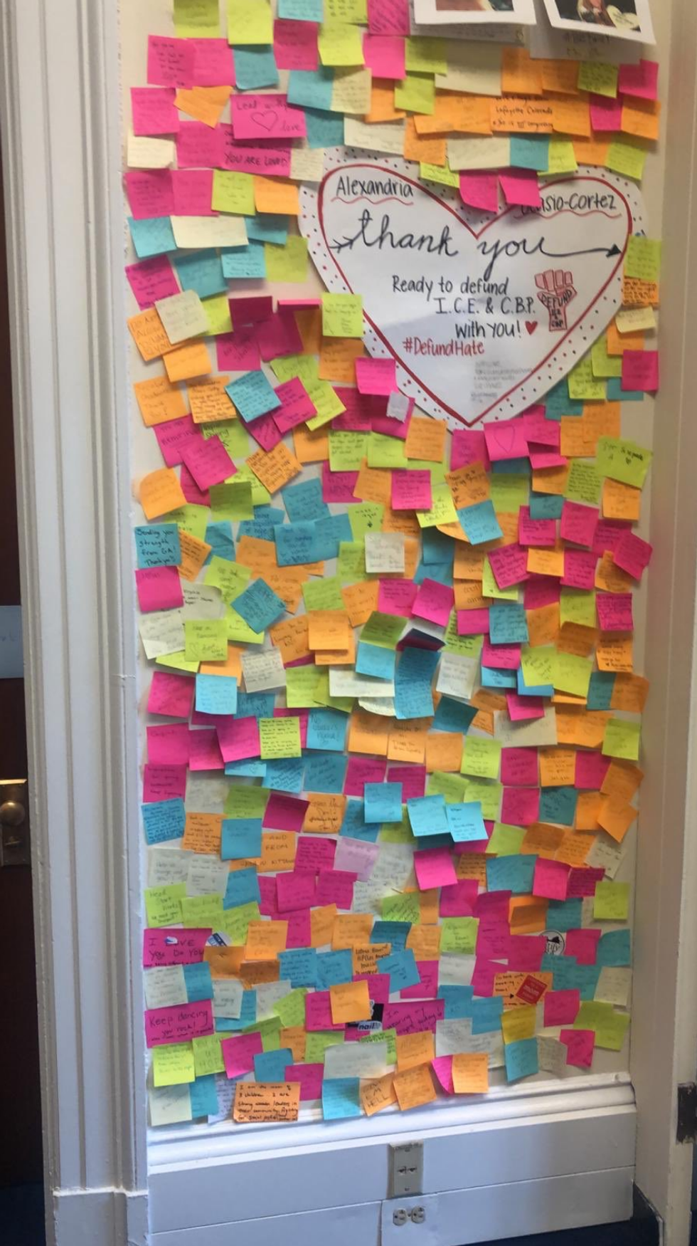 So in memoriam, AOC posted a photo of the Post-it wall in its former state outside her office.
