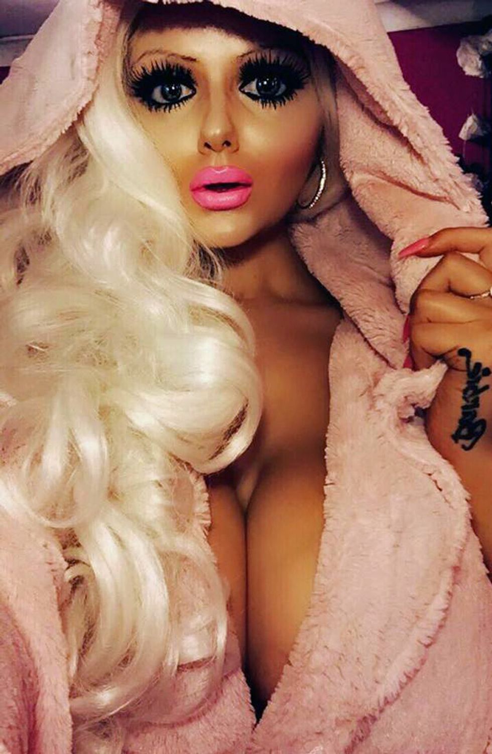 Growing up, she was always a fan of the Barbie-doll look, deciding to bleach her naturally dark locks when she was around 16.