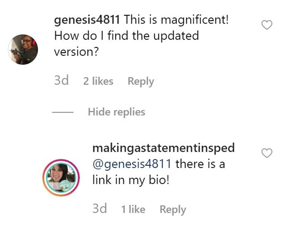 She shared it on her Instagram, and in other teaching groups helping it to spread.