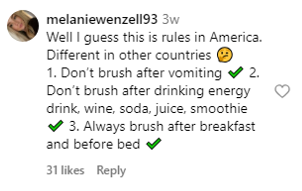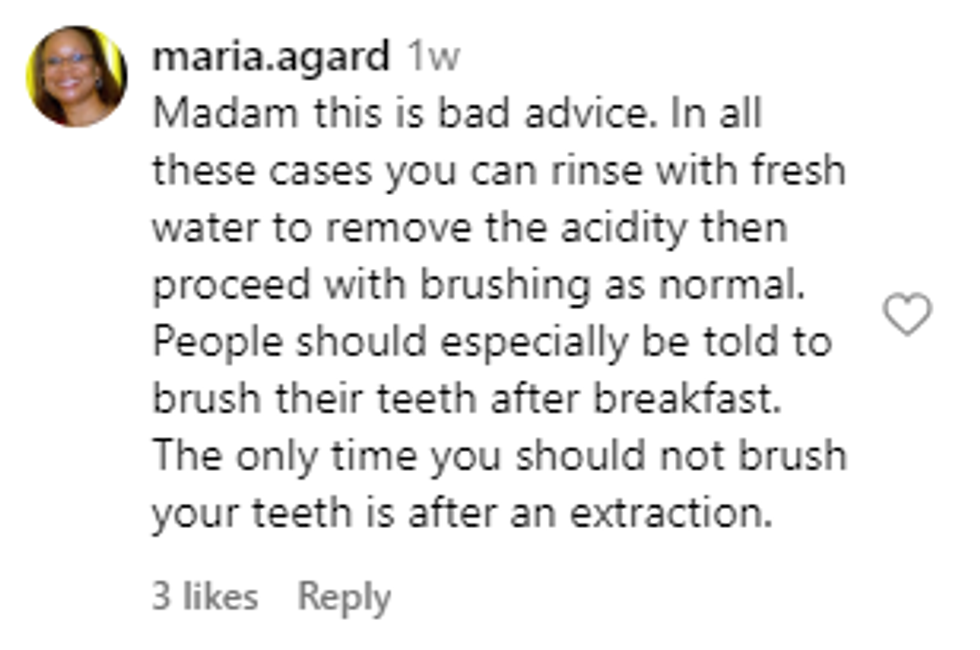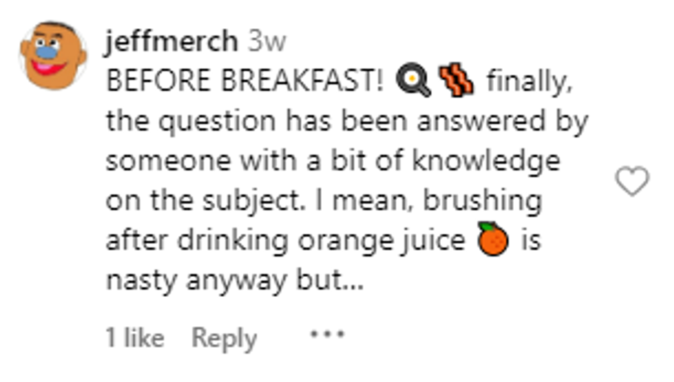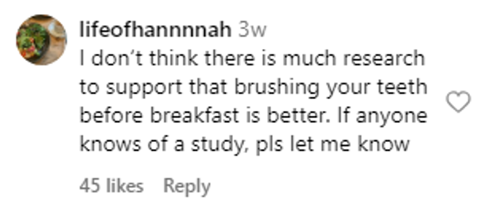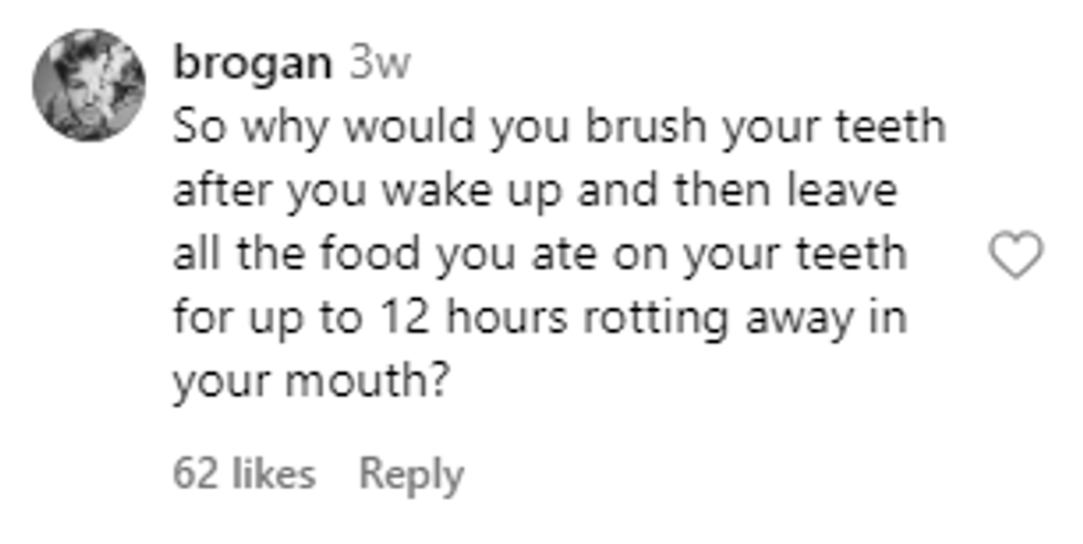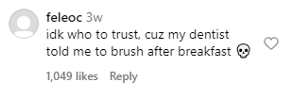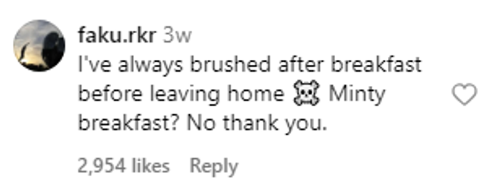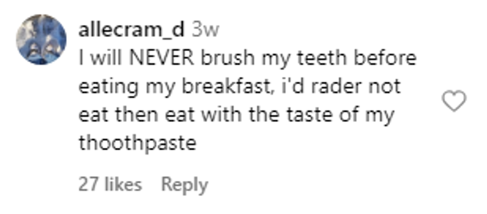 Some criticized the advice, stating that they could never brush their teeth before eating breakfast.