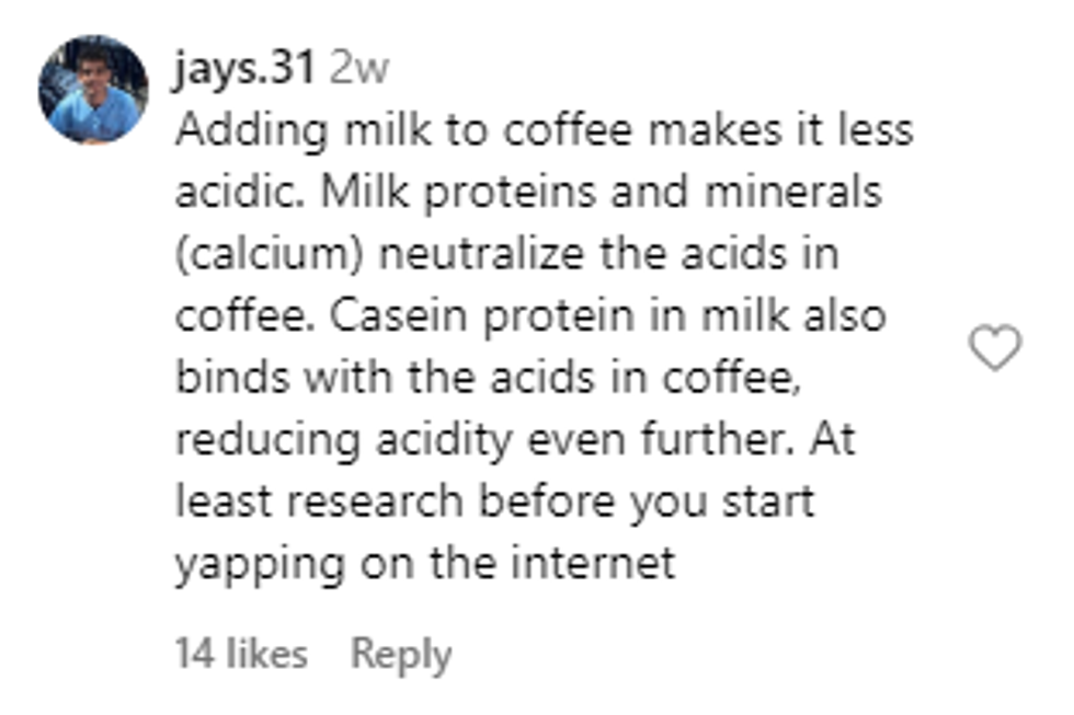 "Coffee is quite acidic, especially if you add milk and sugar. That can make the acidity even worse."