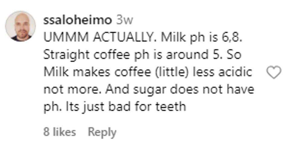 Others were similarly critical of the dentist's comments about what was being put into coffee.