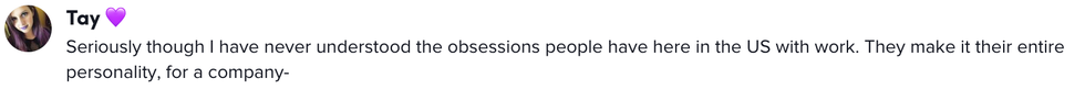 "People work very hard, but there's not as many people who make working hard their whole personality."