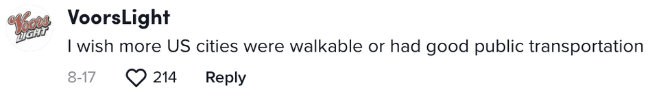 She said that she is also happy to be free of the cost of owning a car and not being a contributor to the negative environmental impacts of driving.