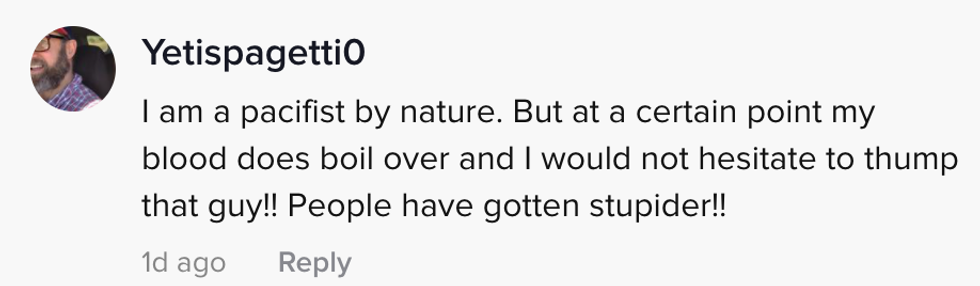 The ensuing argument saw the man admit he "does [his] own research" on YouTube and recommends she do the same.