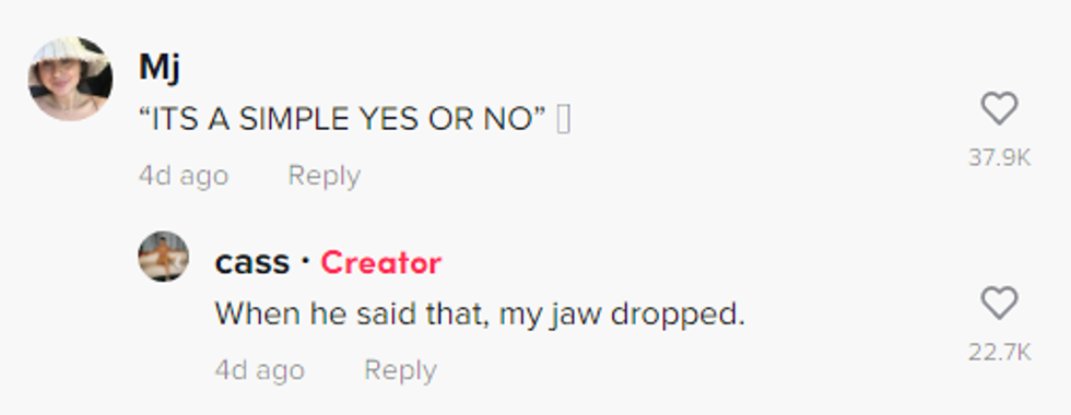 Others were cringing over the guy's push for a response and the woman's final reply.