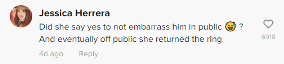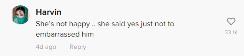 It was clear the audience and the TikTok viewers were all equally anticipating the woman to say no after her reluctance to go up on stage, as well as her lack of reply for so long.
