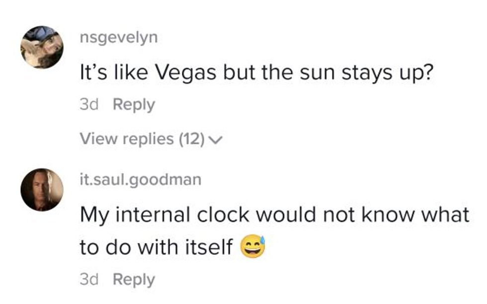 The video shows that @jennababyy.1 and her friends are able to barhop, and get some street food with ease thanks to the daylight. This is despite it being close to midnight.
