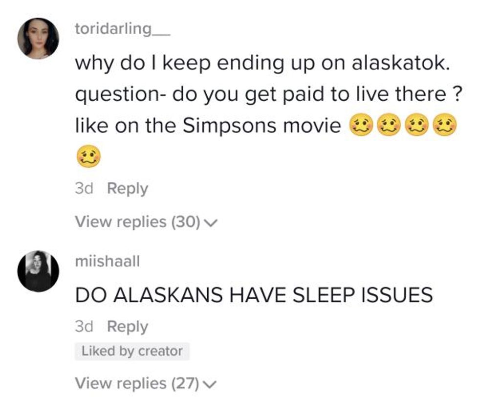 Tiktokker @jennababyy.1 shared a video of her and her friends out drinking, with the video having a caption of: “bars in alaska at 11pm”